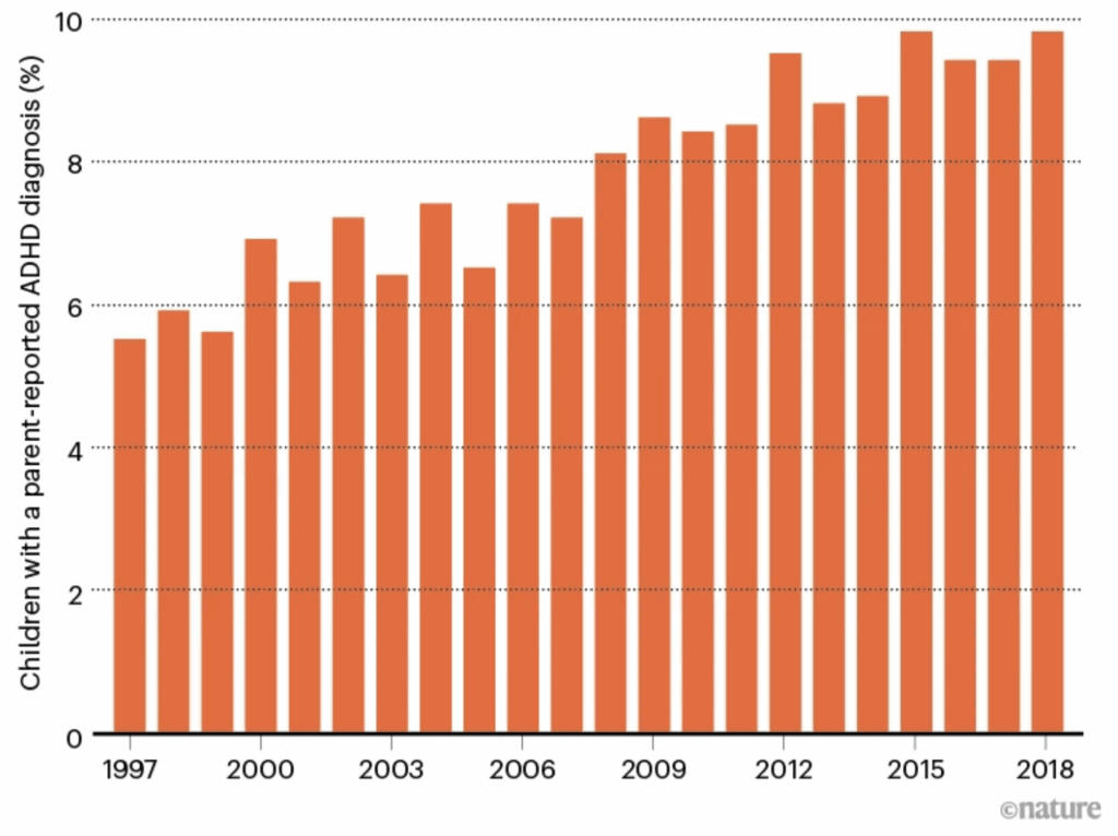 Over the last two decades, the frequency of Attention-Deficit/Hyperactivity Disorder (ADHD) has increased dramatically in many countries. For example, in the United States, it has been recorded that over 11% of children have been diagnosed with this condition at least once in their lifetime. This massive event has created a basis for a global discussion about why ADHD is being identified in large numbers and how healthcare should ensure support for these individuals.